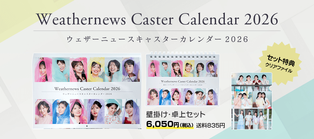 ウェザーニュースキャスターカレンダー2026の販売は、2025年11月12日(水)12時を予定しています。